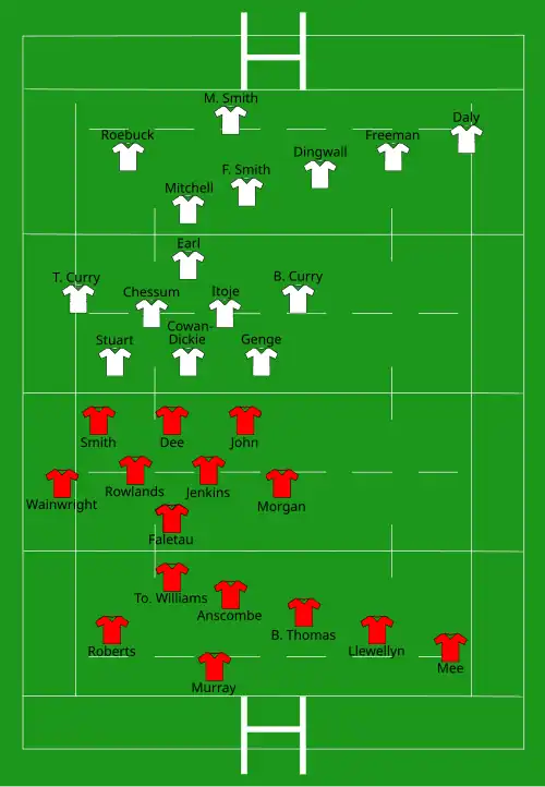 - ^ Williams, Verity (29 January 2025). "Wales team for Guinness Six Nations opener against France". wru.wales. Welsh Rugby Union. Retrieved 24 February 2025.