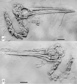 - ^ Zhou, C.-F.; Fan, F. (2025). "Tooth replacement of the filter-feeding pterosaur Forfexopterus and its implications for ecological adaptation". Anais da Academia Brasileira de Ciências. 97 (Suppl. 1). e20240673. doi:10.1590/0001-3765202520240673. PMID 39879506.
