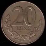 20 Lekë (20 L) coins have a value of 20 Albanian lek.[1]