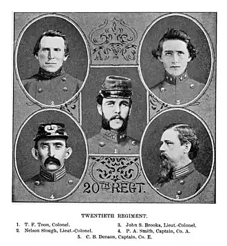 In the spring of 1863, Captain Thomas F. Toon was promoted to colonel of the regiment. In the Battle of Chancellorsville, he was wounded, so Lieutenant Colonel Nelson Slough commanded the regiment in the Battle of Gettysburg. T. F. Toon recovered in time to return to command for the Overland Campaign. The regiment was detached with the rest of the Second Corps to the Shenandoah Valley for the summer and fall of 1864.