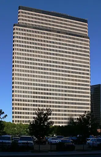 2100 Ross Avenue (simply 2100 Ross,[4] formerly San Jacinto Tower[3]) is a 33-story postmodern skyscraper located at 2100 Ross Avenue[1]/2121 San Jacinto Street[2] in the City Center District of downtown Dallas, Texas, in the United States. The structure stands at a height of 456 feet (139 m) and contains 844,000 square feet (78,400 m2) of office space.