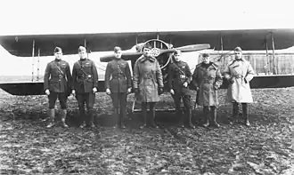 The squadron was assigned as a Day Pursuit (Fighter) Squadron as part of the 3d Pursuit Group, First United States Army. Its mission was to engage and clear enemy aircraft from the skies and provide escort to reconnaissance and bombardment squadrons over enemy territory. It also attacked enemy observation balloons, and perform close air support and tactical bombing attacks of enemy forces along the front lines.[6] After the 1918 Armistice with Germany, the squadron returned to the United States in June 1919 and was demobilized.[1][7]