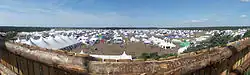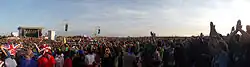 The Jamboree was held on the fields of Rinkaby. In 2001, a national Jamboree took place here with 26,700 participants, and another national Jamboree, Jiingijamborii was held here from 14–22 July 2007.[5] The camp area itself lies near the coast on sandy ground surrounded by pine woods. Sandy earth helps rainwater runoff and thus there is no risk of any parts of the camp area being waterlogged. The campsite is approximately 1.5 km by 1.5 km. Small areas of forest divide the campsite into smaller fields.[5] The temperature is varying, average day temperature in the period is 22 degrees Celsius (72 °F), average night temperature is 17 °C (63 °F). The sun rises at 5 o'clock in the morning (05:00). Sunset is at 9 in the evening (or 21:00). Drinking water is available from wells at the field. There is already an extensive water and power system in the ground, dimensioned with the World Scout Jamboree in mind.[5] In the southern part of the field there is space for the arena with a natural amphitheatre.[5] There are sandy beaches near the camp area with sand dunes formed by the wind, creating their own particular type of landscape. The camp organised shuttle buses to the beach.