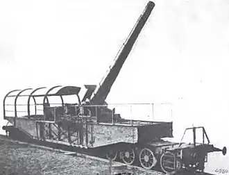 The 24 cm SK L/40 "Theodor Karl" (SK - Schnelladekanone (quick loading cannon) L - Länge (with a 40 caliber barrel)) was a German railroad gun that served on both the Eastern Front and the Western Front in World War I. Originally a naval gun, it was adapted for land service after its ships were disarmed beginning in 1915. One gun saw service in the Belgian Army after the war. After Belgium's surrender in World War II, the Germans used that gun on coast-defense duties for the rest of the war.