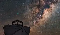 ![]() Comet 252P/LINEAR appearing as a fuzzy and greenish blob above Paranal Observatory[26] |
