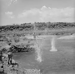 The battalion was reformed at Baggush from those who had escaped capture at Sidi Rezegh (about 300-odd) and other personnel who had been left out of battle, along with replacements from New Zealand. The battalion's second-in-command, Major C.D.A. George, who had been left behind at Baggush when the New Zealanders moved into Libya, was promoted to lieutenant colonel and became its commander.[37] The battalion was stationed at Baggush until late January 1942 before being moved to Maadi.[38] Shortly afterwards it was called into Cairo for four days to increase the Allied presence there and counter potential unrest amongst the civilian population of the city. Once tensions decreased it returned to Maadi,[39] and resumed training and this included practice in amphibious operations.[40]