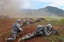 The Combat Aviation Brigade, 25th Infantry Division was also in Afghanistan, from 1 January 2012 to 1 January 2013. The CAB operated in several key regions of Afghanistan, executing missions ranging from air assault to air movement, resupply and counterinsurgency operations.[33] The CAB's Company F (Pathfinder), 2d Battalion, 25th Aviation Regiment, was on the ground conducting missions alongside Afghan forces. The Pathfinders conducted air assault missions with the 2nd Afghan National Civil Order Patrol SWAT to cut off the export of drugs into the area and keep the weapons from coming into the province.[34] The CAB flew its last mission on 7 January 2013. The CAB, 3d Infantry Division took over 25th's mission.[35]