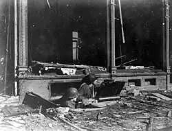 Notable members of the division include Walter Krueger,[35] Edward Lawrence Logan, J. Laurence Moffitt, the last surviving veteran of the Yankee Division from World War I, and Sergeant Stubby, a dog that served with the division in combat in World War I.[36] PFC Michael J. Perkins, a resident of South Boston and a member of the division was awarded the Medal of Honor in France in World War I. PFC George Dilboy of Company H, 103d Infantry was awarded the Medal of Honor for actions against a German machine-gun emplacement in which he was mortally wounded near the Bouresches railroad station on 18 July 1918.[37] Additionally, two members of the division received the Medal of Honor in World War II, Ruben Rivers, and Alfred L. Wilson.[38][39][40][41] Architecture student Victor Lundy was transferred into the 26th in 1944; he produced sketches documenting people, places and scenes that open a window into life in the division between May and November 1944. Lundy donated the surviving sketches to the Library of Congress in 2009, and the collection is accessible online.[42]
