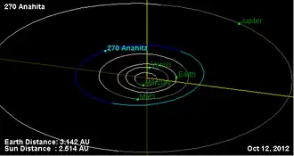 - ^ a b "270 Anahita". JPL Small-Body Database. NASA/Jet Propulsion Laboratory. Retrieved 11 May 2016.
