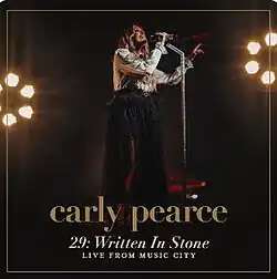 29: Written in Stone (Live from Music City) is a live album by American country artist Carly Pearce. It was released on March 24, 2023, via Big Machine Records and featured 19 tracks. The album was based on Pearce's award-winning 2021 studio album 29: Written in Stone. Many of the album's tracks were live versions of songs that first appeared on that project. It was the first live album of Pearce's career. The album received positive reviews from critics.