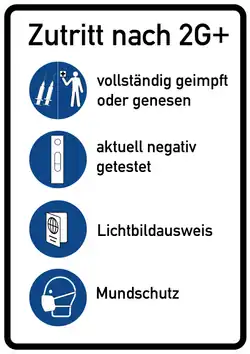 More restrictive versions are the 2G+ (additionally requiring a rapid test) and the 2G++ rules (additionally requiring a rapid test and the wearing of an FFP2 Mask). 3G is less restrictive in that any testing would supersede, rather than complement, the other two requirements ("vaccinated or recovered").[1][2] All tests must have been administered at an official test site.