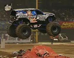 Bounty Hunter: Bounty Hunter won the 2005 Freestyle World Championship with a score of 31, but then it was changed to a 37 after tie-breakers with Tony Farrell and Blue Thunder. Then, Jimmy Creten has driven it to second place in 2009 and 2012. The truck has broken a back wheel off in 2006, 2008 and 2015, thus ending his run. He has broken down early in the run in 2003, 2007, 2016 and 2018. The truck did not compete for freestyle in 2013, due to a blown engine during Racing. He flipped the truck in the middle of the run in 2002, but had a spectacular finish on the trailer jump in 2004, then the truck got knocked off later by Debra Miceli in Madusa. He also did a 360-degree flip during bonus time in 2009, but landed on the roof, and going back to all 4 wheels, making it the WOW Factor of the night.