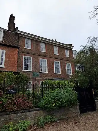 In the 17th century, Highgate was a hamlet to the north of London situated in the midst of the extensive Middlesex estate of the Bishops of London.[1] Nos. 1–6, The Grove, Highgate were built in around 1688 by a City of London merchant, William Blake.[2] Constructed in the gardens of a large mansion called Dorchester House, the speculative development was intended by Blake to fund a charity school he had established in the main building.[3]