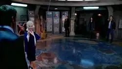 ![]() Jack (Matthew Fox) listens as Hawking (Fionnula Flanagan) explains to Ben (Michael Emerson), Sun (Yunjin Kim) and Desmond (Henry Ian Cusick) how they will return to the island. | |