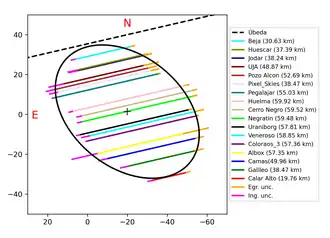 ![]() The outline of Leona's shape revealed in a stellar occultation from 13 September 2023 | |