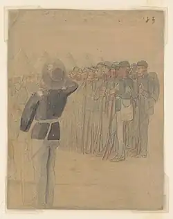 Adolph G. Metzner, a German-born pharmacist who immigrated to the United States in 1856 and served in the 32nd Indiana from August 1861 to September 1864, made numerous sketches and drawings during his wartime service with the regiment. His illustrations, which were published in Blood Shed in This War, provide a visual record of the 32nd Indiana’s camp life and battle experiences as well as his impressions of the people, places, and major events the regiment encountered during the war.[25][26]