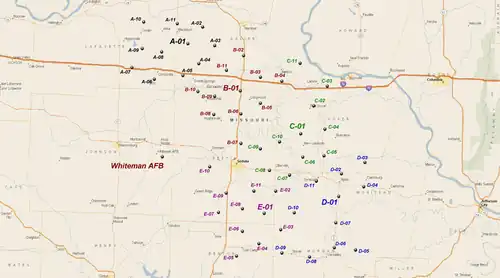 - G-01 (MAF) 7.4 mi WxNW of Lowry City MO; 41.3 mi SxSW of Whiteman AFB