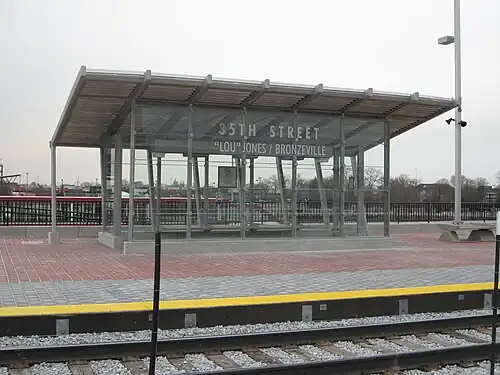 Jones/Bronzeville,[3] also known as 35th Street, is a station on Metra's Rock Island District line. It is located in the Bronzeville neighborhood on the South Side of Chicago, Illinois. It was named in honor of Lovana Jones who was an Illinois State Representative in the Bronzeville neighborhood.