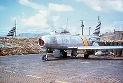 When the Korean War ended, the squadron started flying North American F-100 Super Sabres at its new location at Itazuke Air Base, Japan. In 1963, the squadron received Republic F-105 Thunderchiefs to replace the F-100s and moved to Yokota Air Base, Japan.[12]