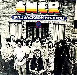 3614 Jackson Highway was released in the summer of 1969. It remains Cher's first and last solo studio album for Atco, and was produced by Jerry Wexler, Tom Dowd and Arif Mardin. The cover is a photograph of Cher with the Muscle Shoals Rhythm Section musicians featured on the album. They are: front row, left to right: guitarist Eddie Hinton, bassist David Hood, Sonny Bono, Cher, producer Jerry Wexler, background vocalist Jeannie Greene, background vocalist Donna Jean Godchaux, and producer Tom Dowd. Back row, left to right: lead guitarist Jimmy Johnson, producer Arif Mardin, drummer Roger Hawkins and keyboardist Barry Beckett. Missing were background vocalists Mary Holiday and Sue Pilkington.