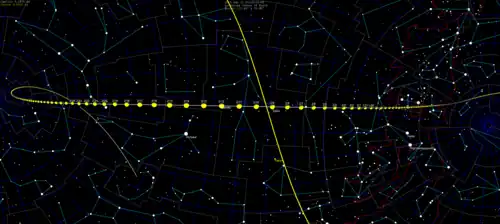 ![]() Camillo's south to north daily motion in the sky as seen from the earth |