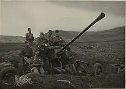 The 37 mm automatic air defense gun M1939 (61-K) (Russian: 37-мм автоматическая зенитная пушка образца 1939 года (61-К)) is a Soviet 37 mm calibre anti-aircraft gun developed during the late 1930s and used during World War II. The land-based version was replaced in Soviet service by the AZP S-60 during the 1950s. Guns of this type were successfully used throughout the Eastern Front against dive bombers and other low- and medium-altitude targets. It also had some usefulness against lightly armoured ground targets.