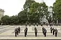 The Changing of the Guard (Cambio de guardia) is a 105 year old traditional military parade of the battalion that takes place on Wednesdays, Fridays and Sundays at 4 PM (COT) in the central square (Plaza de Armas) of the Casa de Nariño. It marks the changing of the security command at the palace. The changing of the guard involves the Fergusson Company and the battalion's military band and corps of drums.[5]