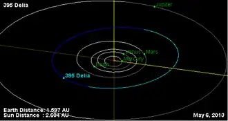 - ^ a b c "395 Delia (1894 BK)". JPL Small-Body Database. NASA/Jet Propulsion Laboratory. Retrieved 10 May 2016.
