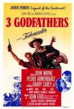 3 Godfathers is a 1948 American Western film in Technicolor directed by John Ford and starring John Wayne, Pedro Armendáriz and Harry Carey Jr. The screenplay was written by Frank S. Nugent and Laurence Stallings based on the 1913 novelette The Three Godfathers by Peter B. Kyne. The story is a loose retelling of the biblical Three Wise Men in an American Western context.[2]