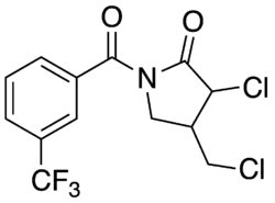 He approached a chemist, Ron Rusay, at the Western Research Center who independently synthesized the compound and submitted it for further greenhouse testing. These tests showed that it had modest herbicidal activity against grass weeds at a very high application rate of 100 pounds per acre (112 kg/ha). He prepared a series of analogs in which the alkanoyl group was modified and a patent was obtained on this series of compounds.[28] These compounds had similar, weak herbicidal activity similar to that found with the lead compound. Because of the weak herbicidal activity, work on other analogs was not pursued.