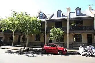 This Wikipedia article was originally based on Terraces, entry number 926 in the New South Wales State Heritage Register published by the State of New South Wales (Department of Planning and Environment) 2018 under CC-BY 4.0 licence, accessed on 13 October 2018.