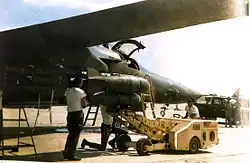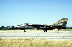 In early 1968, the Air Force decided to send a small detachment of F-111As to Southeast Asia under the "Combat Lancer" program. Six 428th TFS Harvest Reaper F-111As were allocated to Combat Lancer under "Detachment 1"[9]: 38 under the command of Colonel Ivan H. Dethman, and they departed Nellis for Takhli Royal Thai Air Force Base on 15 March 1968. The six F-111s, accompanied by KC-135 tankers, departed for Andersen Air Force Base, Guam. The over 13-hour trip was flown using the F-111's inertial navigation system and with topoff refueling from the tankers, arriving at Andersen AFB on the 16th.[6]: 28 The Detachment departed Andersen and arrived at Takhli on 17 March. The Detachment was attached to the F-105 Thunderchief-flying 355th Tactical Fighter Wing in what was officially seen as the first stage in replacement of the Wing's F-105s with the F-111A.[9]: 38 F-111 combat operations began on 25 March using the aircraft's unique terrain following radar (TFR) capability to conduct surprise night deep interdiction strikes.[6]: 29 By the end of the deployment, 55 night low-level missions had been flown against targets in North Vietnam, but three aircraft had been lost. Aircraft 66022, call sign Omaha 77, was lost on 28 March with the loss of the crew, Colonel Hank McCann and Captain Dennis Graham. On 30 March, the crew of Major Sandy Marquardt and Captain Joe Hodges in aircraft 66017, Hotrod 73, successfully ejected and was recovered uninjured in Thailand.[9]: 40 Replacement aircraft had left Nellis, but a third loss halted F-111A combat operations. On 22 April, Tailbone 78, aircraft 66024, crewed by Lieutenant Commander Spade Cooley and by Lieutenant Colonel Ed Palmgren, was lost.[10] After the 3rd loss, the Detachment remained poised for combat, but they saw no combat action before their return to the U.S. on 22 November.[7] The Detachment and remaining aircraft returned to Nellis and development of the F-111 continued, with the 474th finally reaching operational status in 1971.