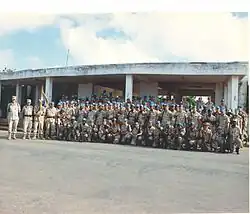 In December 1992, a UN-sanctioned, U.S.-led deployment of more than 30,000 troops began, to ensure delivery of food aid. These troops were gradually reduced and in large part replaced early in 1993 by a UN peacekeeping operation in which the 43rd CSG played a smaller role. United Nations mediators attempted to bring together the various Somali faction leaders to restore peace to the country. On 26 March 1993, the United Nations passed Resolution 814 which considerably broadened its mandate to intervene in another country's affairs. The UN was now intervening militarily in a peacemaking role under Chapter VII of its charter. The (CSG) from Fort Carson, Colorado, was alerted for Somalia[5] in December 1992. The Brigade Staff included: CSM Forrest R. Guess, BDE XO Stephen Strobel, BDE S-1 Major Dan Bandy, BDE S-2 CPT Sherri Rhodus, BDE S-3 MAJ Greg Alderete, BDE SPO Bill Holstun, BDE S-4 MAJ Dona M. Thomas, the Command Chaplain was CPT Duncan Baugh[6] and the Brigade Legal Advisor was CPT Jody M. Hehr. The Headquarters Company was commanded by CPT Tim Garipee and 1SG John L. Elsasser.