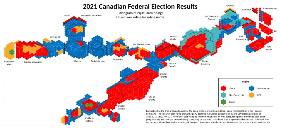 - ^ Kustra, Tyler (September 21, 2021). "Why did Trudeau win the Canadian election by such a slim margin?". The Washington Post. Retrieved September 25, 2021.