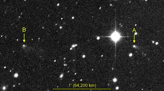 | Observation arc | 153 days (A)[2] 140 days (B)[3] |