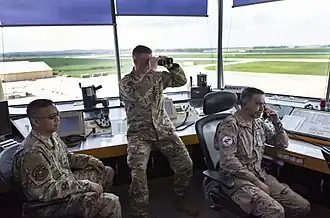 ![]() 496th ABS air traffic controllers in the control tower at Morón Air Base | |