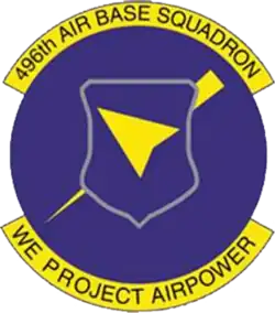 | 496th Air Base Squadron emblem (Approved 17 October 1994) | ![]() |