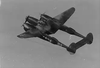 ![]() A P-38 Lightning of the group in flight | |