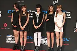 On May 14, Cube Entertainment announced the formation of a five-member girl group, called 4Minute, and revealed that its first member would be former Wonder Girls member Kim Hyuna.[10] Prior to the official announcement, the group was unofficially called the "Hyuna group".[11] The next member, Nam Ji-hyun, was revealed on May 22.[12] The remaining members were announced the following day.[13] 4Minute released its first single, "Hot Issue", on June 15, and had their first television performance on MNet Countdown on June 18.[5] On June 21, the group's van was raided by fans, who stole clothing and other items. Cube Entertainment said, "It was very unfortunate that such an ordeal occurred."[14] On August 20, the group released its first mini-album called For Muzik along with its second single, "Muzik".[15] The song won an Inkigayo Mutizen award. On August 27, South Korean radio and television network KBS banned the playing of "Won't Give You" (안줄래) for what they considered to be overly sexual lyrical content.[16] The lyrics in question, in the style of a first-person narrative, express an unwillingness on the part of the subject to "give" herself or her heart to her partner. Cube Entertainment responded to the ban by stating that the song was intended to be "about the pure feelings of a girl to a guy" and that they were very disappointed by the decision.[17] On October 15, the single "What a Girl Wants" was released.[18] On December 2, 4Minute, with Korean singers Mario and Amen, released the Christmas song "Jingle Jingle".[19] The group recorded a remix with American artist Amerie for her song "Heard 'em All" which was part of the Asian version of her fourth album.[20] The song featured Korean rapper Yong Jun-hyung of label mate Beast.[21]