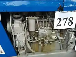 Engines for vehicles are equipped with an air compressor, to supply compressed air for the brakes. It is an air-cooled single-cylinder air-compressor driven by a belt. The air-intake is next to the engine intake manifold. The crankcase is not divided, the crankshaft is forged and has two ball bearings. The pushrod is housed in a needle bearing, the piston journal has a plain bearing pressed into the push rod bore. The piston has two piston rings and one oil control ring. Lubrication is done by a dry sump lubrication system, the compressor valves are poppet valves.