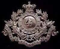 The 4th Punjab Infantry Regiment was an infantry regiment of the British Indian Army formed on 18 April 1849 by Captain GG Denniss at Lahore as part of the Transfrontier Brigade, which became the Punjab Irregular Force (PIF) in 1851. The regiment was designated as the 57th Wilde's Rifles (Frontier Force) in 1903, and 4th Battalion (Wilde's) 13th Frontier Force Rifles in 1922. In 1947, it was allocated to the Pakistan Army, where it continues to exist as 9th Battalion The Frontier Force Regiment.[1][2]