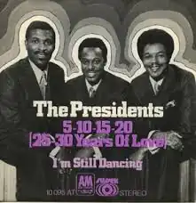 "5-10-15-20 (25-30 Years of Love)" is a 1970 song by The Presidents. It is the title track and first release from their album. The song was produced by Van McCoy. It reached number 11 on the US Billboard Hot 100, number 5 on the R&B chart and was nominated for a Grammy Award for Best R&B Performance by a Duo or Group with Vocals.