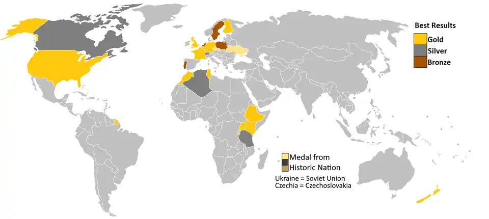 - nb The German total includes teams both competing as Germany and the United Team of Germany, but not East or West Germany.