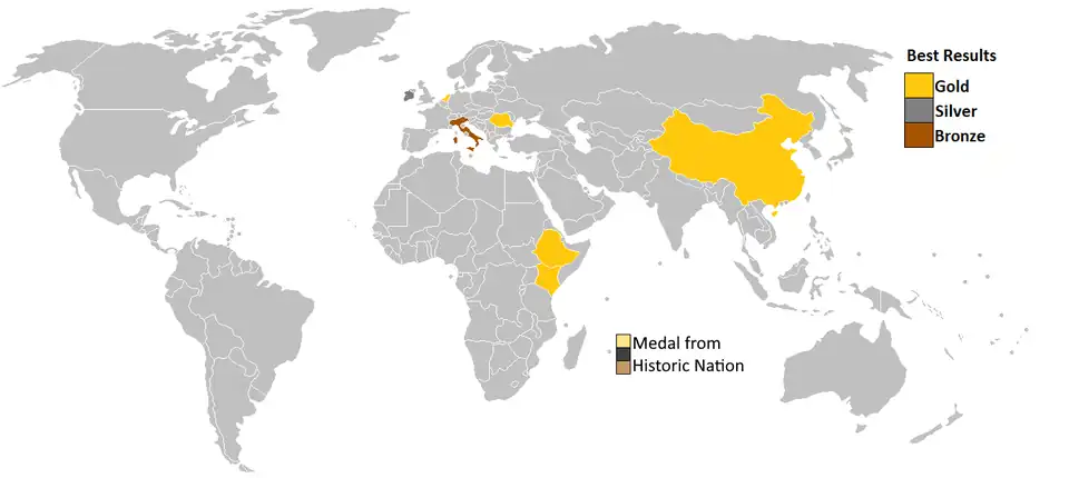 Ethiopia is the most successful nation in the event, having taken six gold medals and fifteen medals in total. The next most successful nation, depending on definition, is either Finland or Kenya. In terms of gold medals, Finland is equal with Ethiopia at six, but has a total of twelve overall medals to Ethiopia's 15. Finland's period of great success in the 1920s and 1930s led to the wide usage of the nickname the Flying Finns; Kaarlo Maaninka was the last Finnish athlete to medal over 5000 m, in 1980. Kenya have won fourteen medals in the 5000 m, second only to Ethiopia in total medals in the event, although John Ngugi and Vivian Cheruiyot are the only Kenyans to have won Olympic gold.