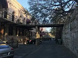 504–516 East Factors Walk (also known as the Tidewater Oil Company Building) is a historic range of buildings in Savannah, Georgia, United States. The buildings date to 1889, when a three-year construction process began, but the earlier warehouse that stood at the location dated to 1812.[1] The new construction added several pedestrian bridges that connect the building to the "Green" (Emmet Park) between the adjacent Rossiter Place and East Bay Street, passing over East Factors Walk.[1][2] It is now Olde Harbour Inn.[1][3]