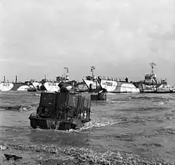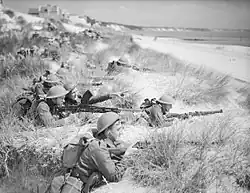 The 50th (Northumbrian) Infantry Division was an infantry division of the British Army that saw distinguished service in the Second World War. Pre-war, the division was part of the Territorial Army (TA) and the two Ts in the divisional insignia represent the two main rivers of its recruitment area, namely the rivers Tyne, and Tees.[3] The division served in almost all of the major engagements of the European War from 1940 until late 1944 and also served with distinction in North Africa, the Mediterranean and Middle East from mid-1941 to 1943. The 50th Division was one of two British divisions (the other being the 3rd Infantry) to land in Normandy on D-Day, 6 June 1944, where it landed on Gold Beach. Four men of the division were awarded the Victoria Cross during the war, more than any other division of the British Army during the Second World War.