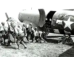 Moved to Belgium in early 1945, and participated in the Western Allied invasion of Germany, participating in the air assault across the Rhine River in March 1945, each aircraft towed two gliders with troops of the 17th Airborne Division and released them near Wesel.