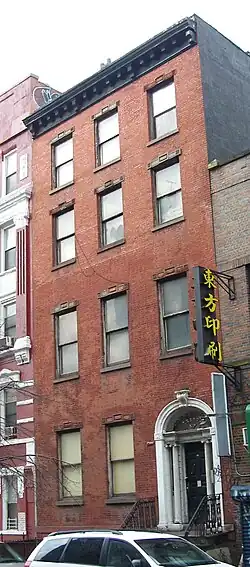 51 Market Street, also known as the William and Rosamond Clark House,[2] is a historic house located between Madison and Monroe Streets in lower Manhattan in New York City. The two-story gambrelled house was built in 1824–25 in the late Federal style at a time when the Lower East Side was an affluent residential neighborhood. The original owner was apparently William Clark, a grocer. The upper two stories were added late in the 19th century.[2] The house has been described in the AIA Guide to New York City as a "superb" example of the Federal style.[3]