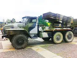 BM-21 "27777" launch vehicle at display in Kyiv 2014.