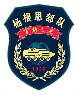 The 58th Division engaged U.N forces at Hagaru-ri and Kot’ori during the Battle of Chosin Reservoir.[2] The division's attacks at Hagaru-ri were unsuccessful.[3] The division's attacks at Kot'ori were unsuccessful in halting UN forces from reinforcing their positions Hagaru-ri, but it, along with the 60th division, inflicted severe losses on the convoy.[4] Per official Chinese lore, Yang Gensi, commander of 3rd Company, 172nd Infantry Regiment, sacrificed himself when holding a strategic position with one of his platoons by throwing himself himself into a group of more than 40 UN soldiers while holding a satchel charge, killing himself and some UN soldiers. Yang was posthumously awarded the titles of "First Class Hero of People's Volunteer Army", and "Hero of Democratic People's Republic of Korea".[5][6]